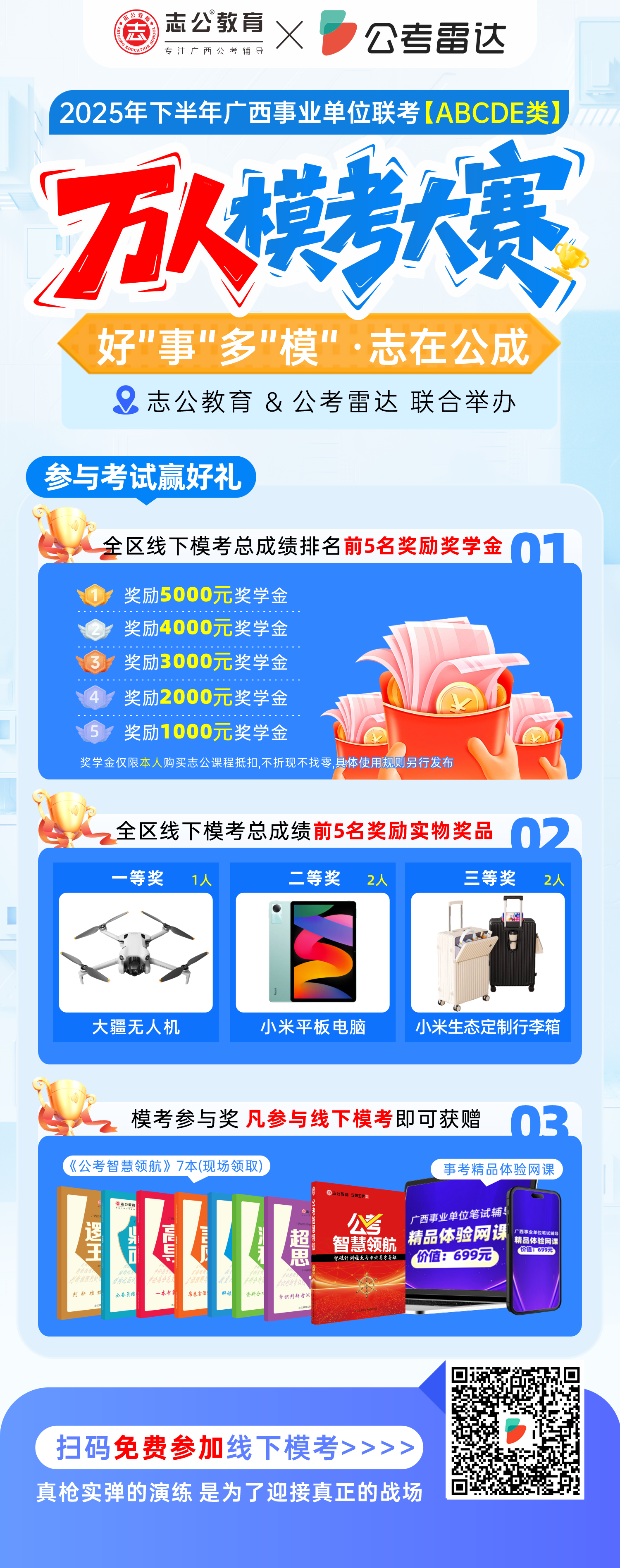 3??模考參與獎(jiǎng):凡報(bào)名線(xiàn)下???,考完即可獲贈(zèng)《公考智慧領(lǐng)航》7 本(現(xiàn)場(chǎng)領(lǐng)?。┖褪驴季敷w驗(yàn)網(wǎng)課等學(xué)習(xí)大禮包。