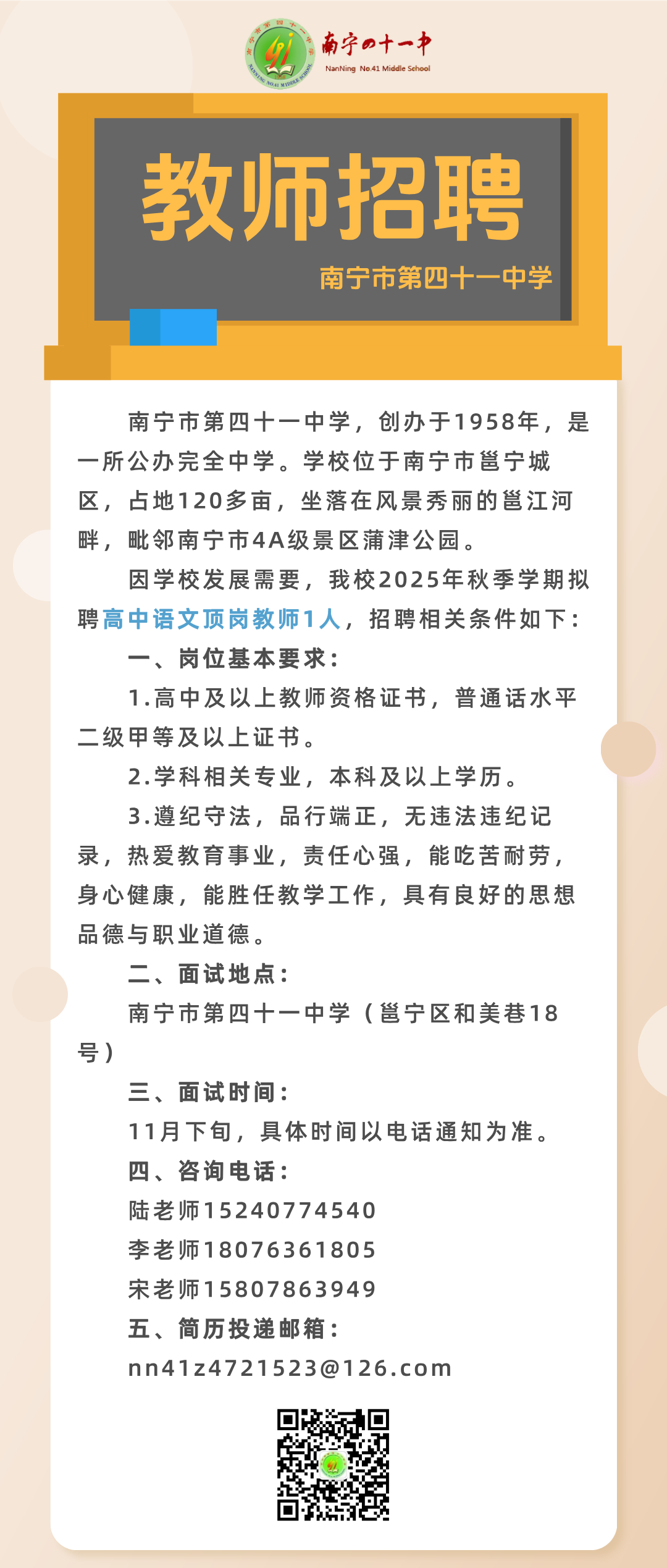 2025年秋季學期南寧市第四十一中學關于公開招聘頂崗教師的啟事