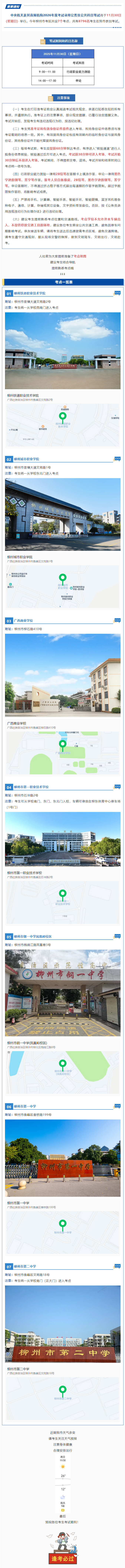 2026年度國家公務(wù)員筆試(柳州考區(qū))溫馨提示及考場分布
