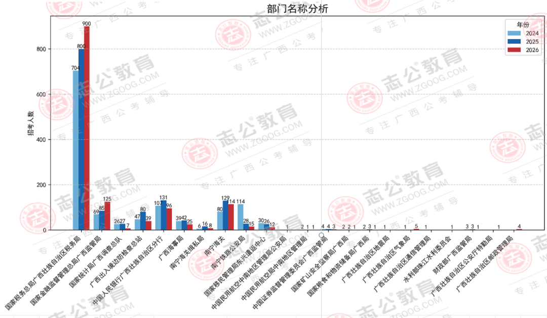 在今年,廣西國稅系統(tǒng)這個招考“大戶”,招錄漲到了900人,職位數占比66%。此外,國家金融監(jiān)督管理總局廣西監(jiān)管局招125人,呈正增長,與2025年國考相比漲幅47%。南寧海關從2025年招錄129人,2026年只招錄114人,相比縮減了11.63人。