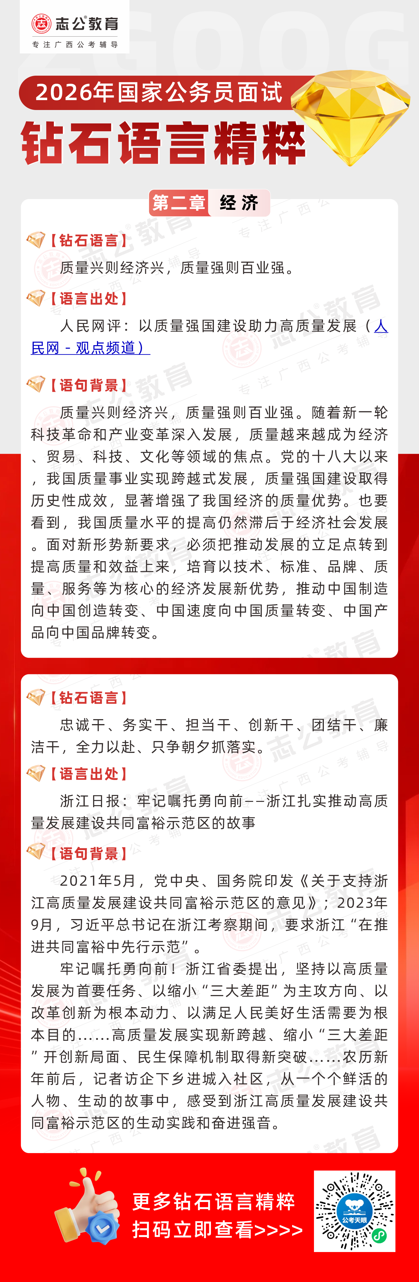 志公教育推出《2026國(guó)家公務(wù)員面試·鉆石語(yǔ)言精粹》!幫助考生把握經(jīng)濟(jì)類題目應(yīng)答邏輯,提升語(yǔ)言表達(dá)層次,助你在面試中脫穎而出。備考2026國(guó)考面試,從掌握“鉆石語(yǔ)言”開(kāi)始!