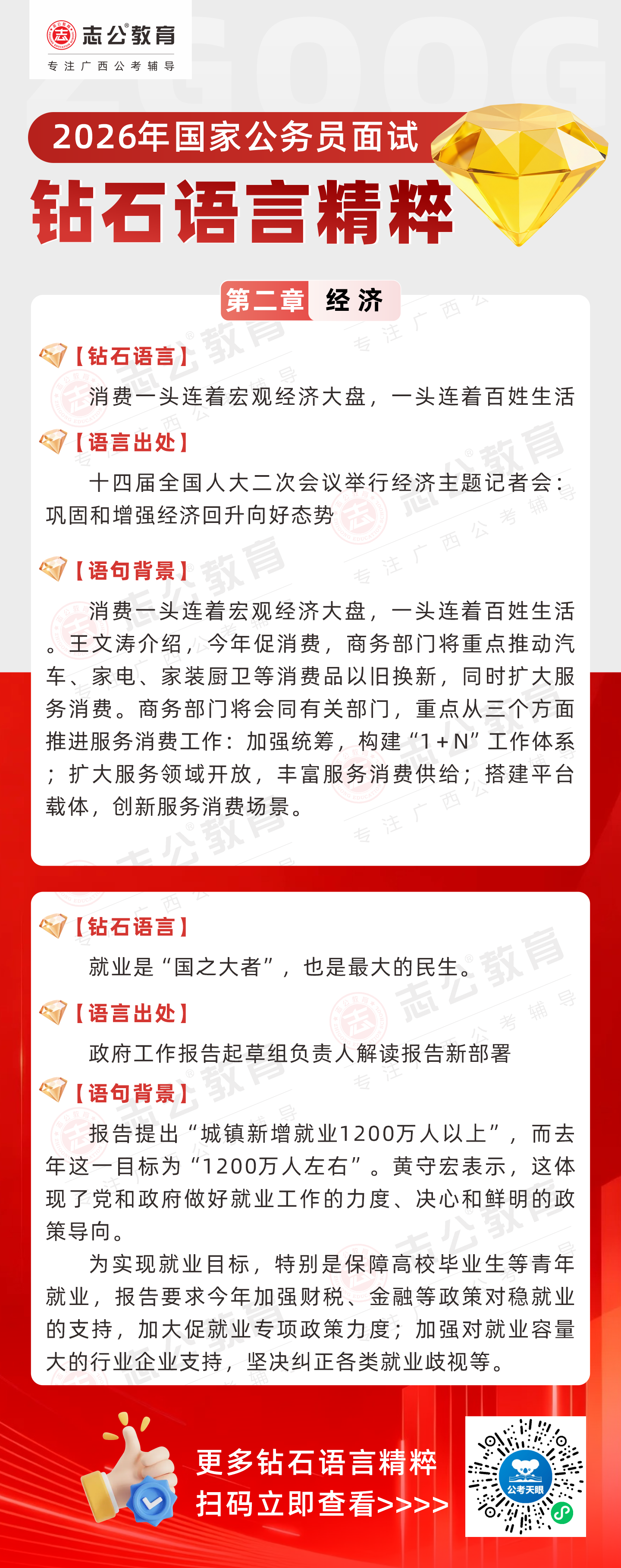 志公教育推出《2026國家公務(wù)員面試·鉆石語言精粹》經(jīng)濟(jì)篇!幫助考生把握經(jīng)濟(jì)類題目應(yīng)答邏輯,提升語言表達(dá)層次,助你在面試中脫穎而出。備考2026國考面試,從掌握“鉆石語言”開始!