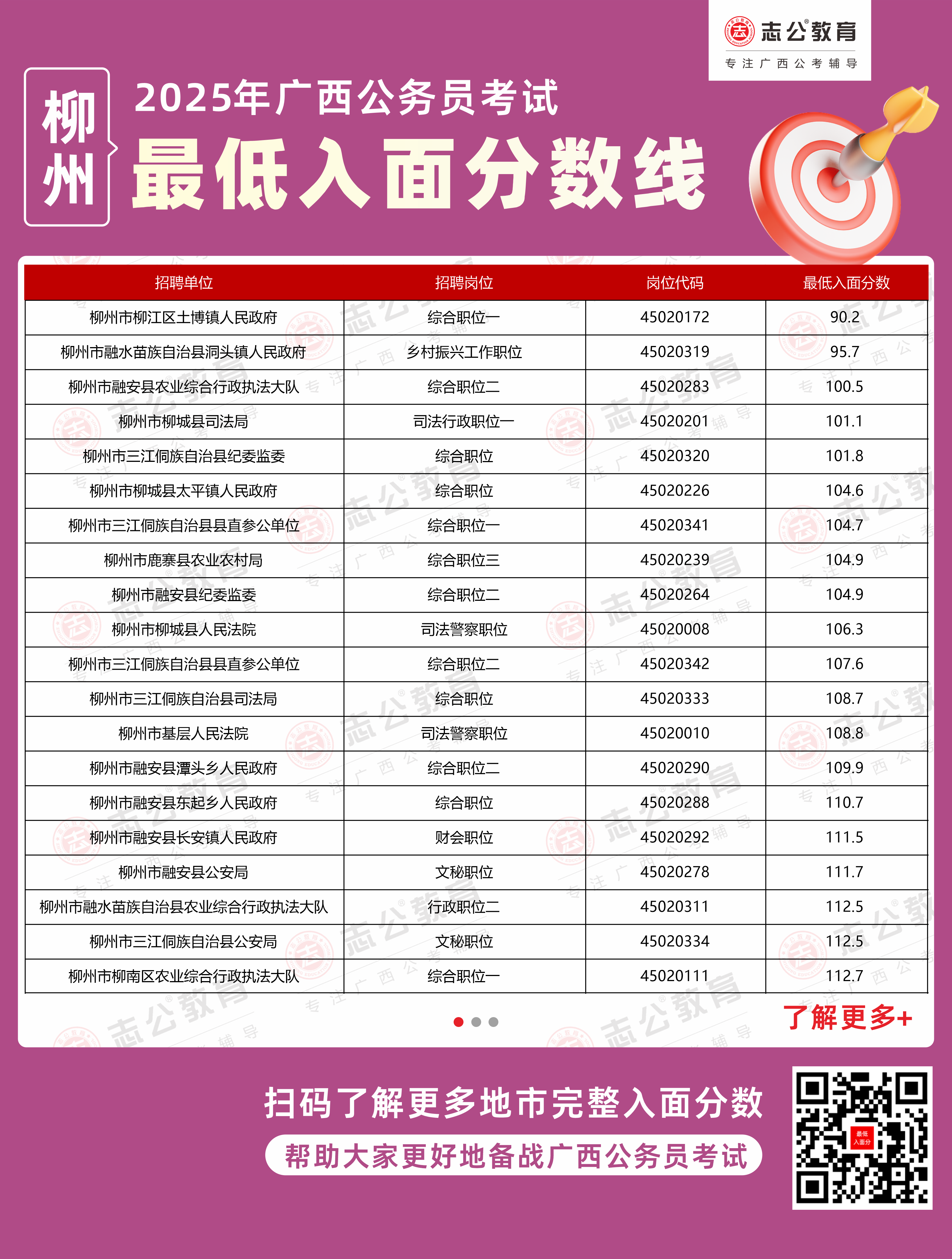 (點擊下載更多2025年柳州公務(wù)員最低入面分數(shù),數(shù)據(jù)整理自官方發(fā)布的面試資格審查公告)