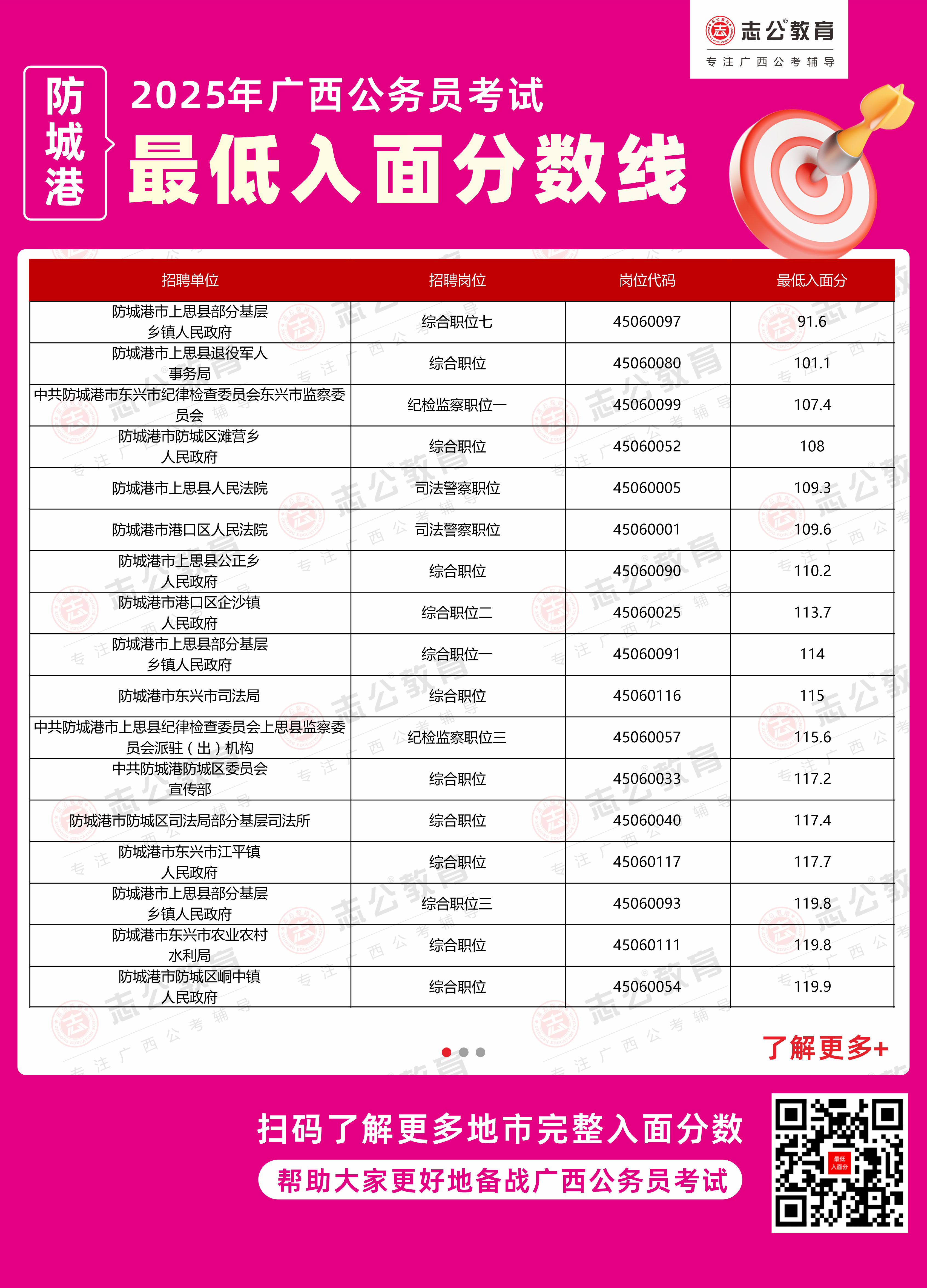 (點擊下載更多2025年防城港公務員最低入面分數(shù),數(shù)據(jù)整理自官方發(fā)布的面試資格審查公告)