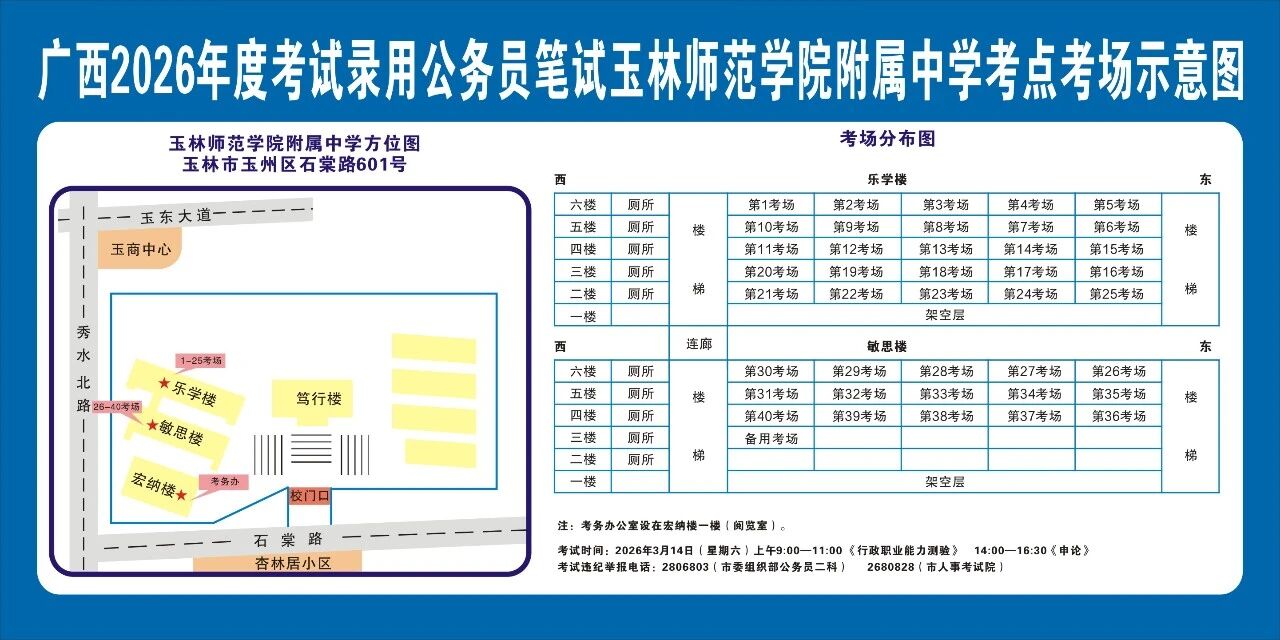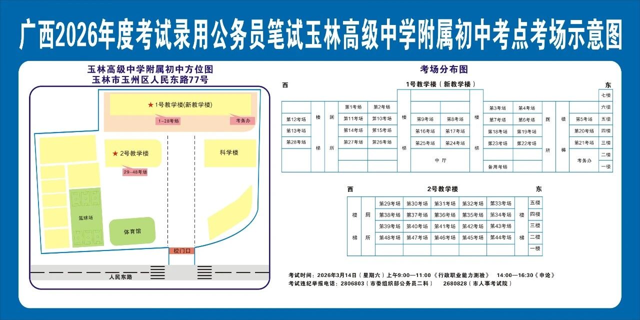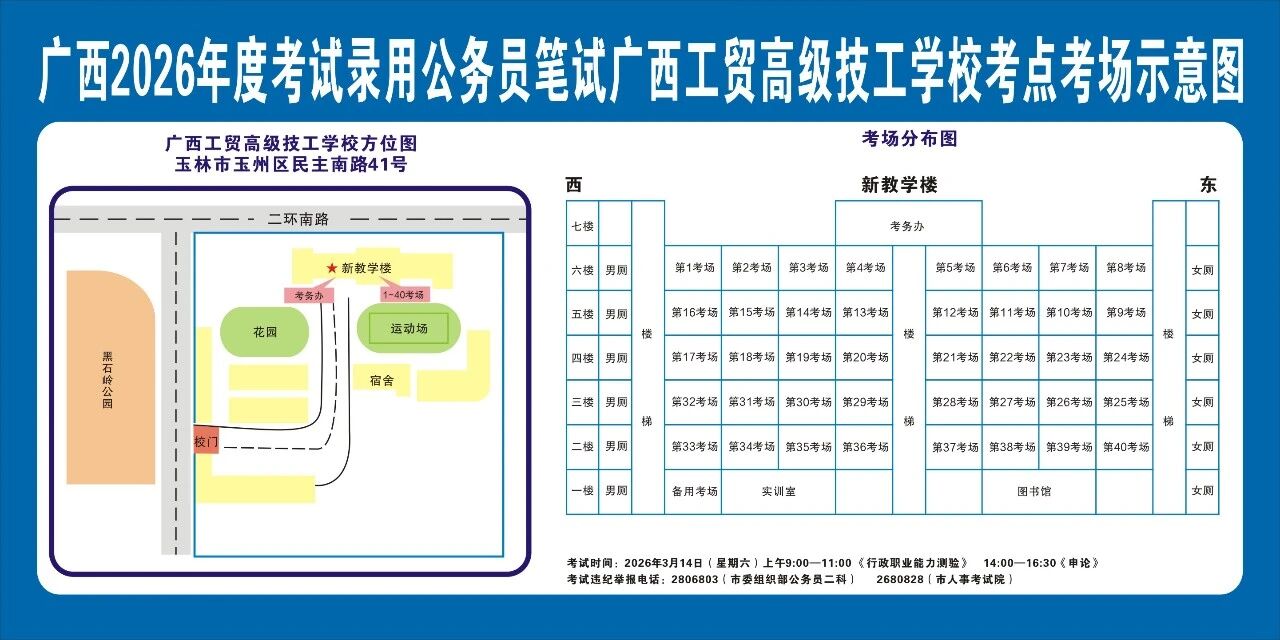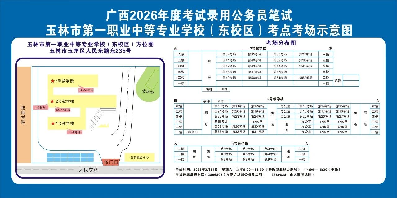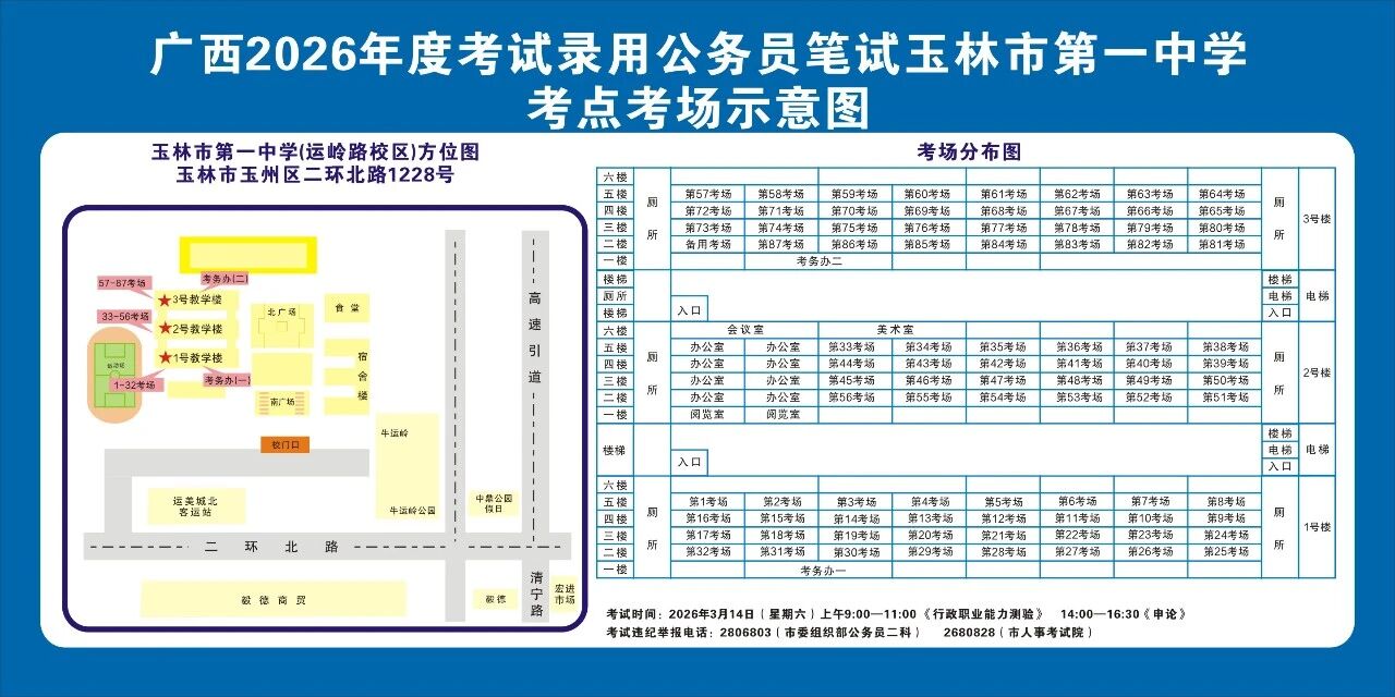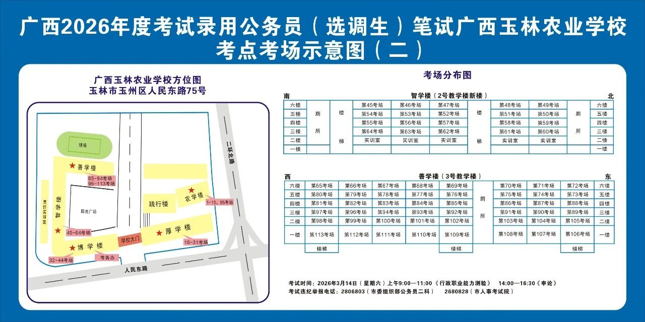 廣西2026年度考試錄用公務員(選調(diào)生)筆試將于3月14日舉行,為進一步提升玉林考區(qū)服務保障質(zhì)量,現(xiàn)就有關(guān)注意事項提示如下,請廣大考生做好應試準備工作,準確掌握考試時間、考點地址及相關(guān)注意事項。