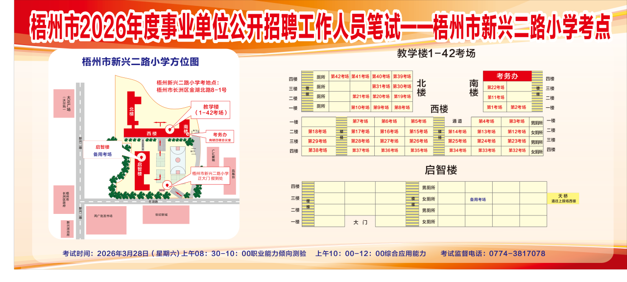 請考生提前熟悉各自考點位置、周邊環(huán)境及交通情況,考試當(dāng)天提前出門做好準(zhǔn)備,準(zhǔn)時參加考試。特別提示:因考點停車場地有限,所有考生車輛不得進入考點,請考生規(guī)劃好前往考點的交通方式和路線。此外,萬秀區(qū)西堤二路新華路口至豐業(yè)藍天港灣段、長洲區(qū)西堤三路梧州市人力資源和社會保障局至奧奇麗路口段道路實施臨時交通管制措施,如果考生通往考點途經(jīng)此路段,請?zhí)崆耙?guī)劃路線和出行時間。