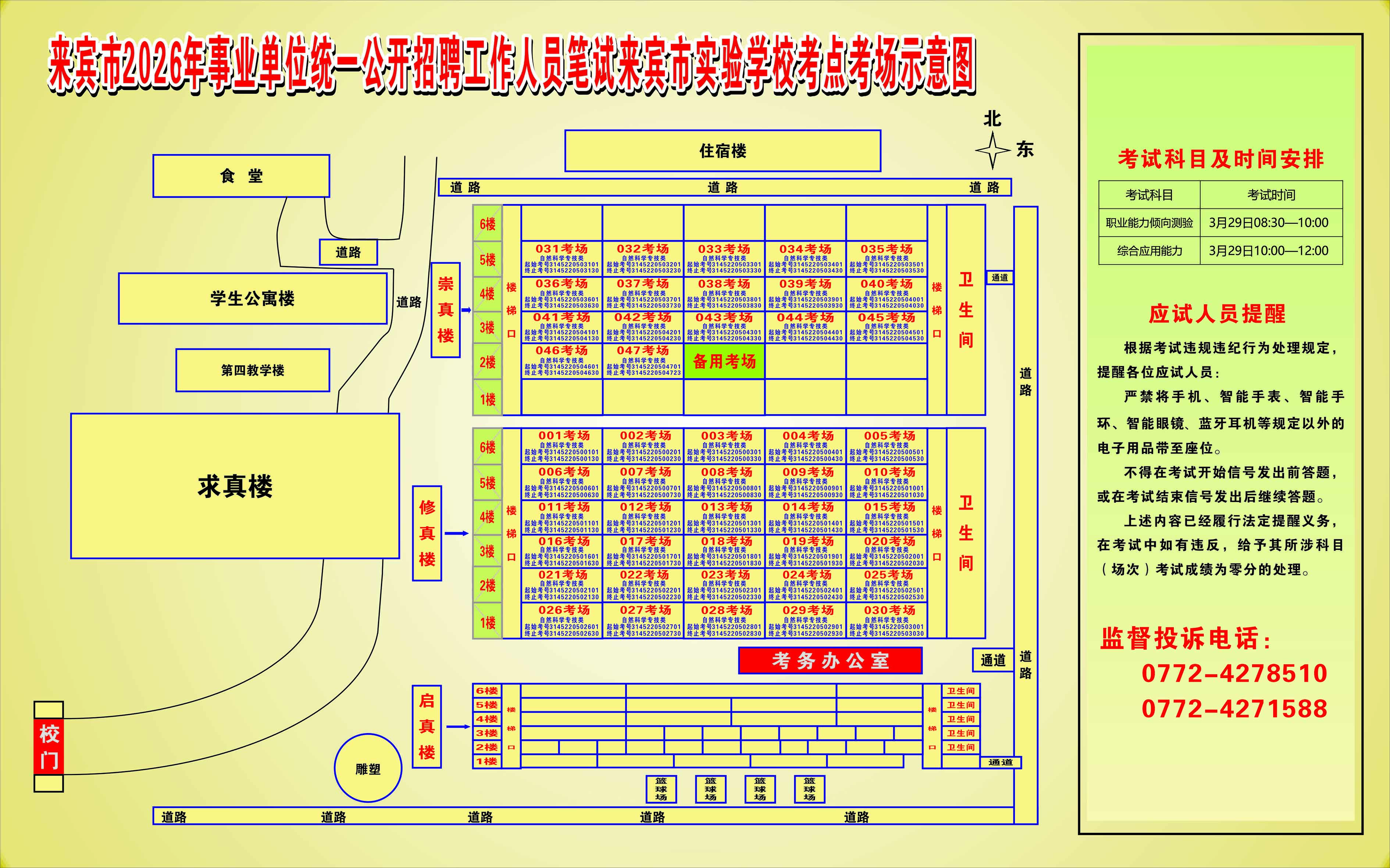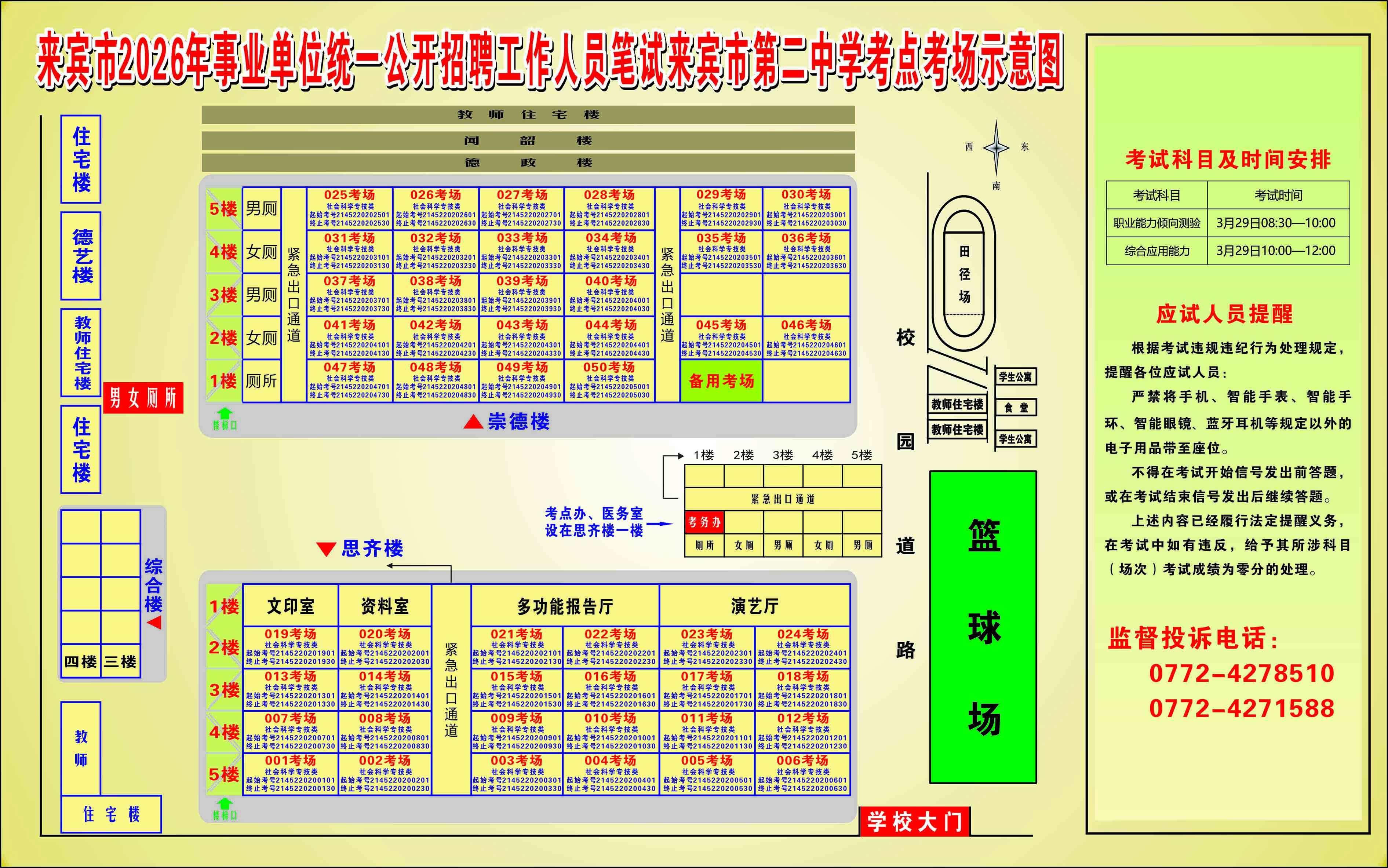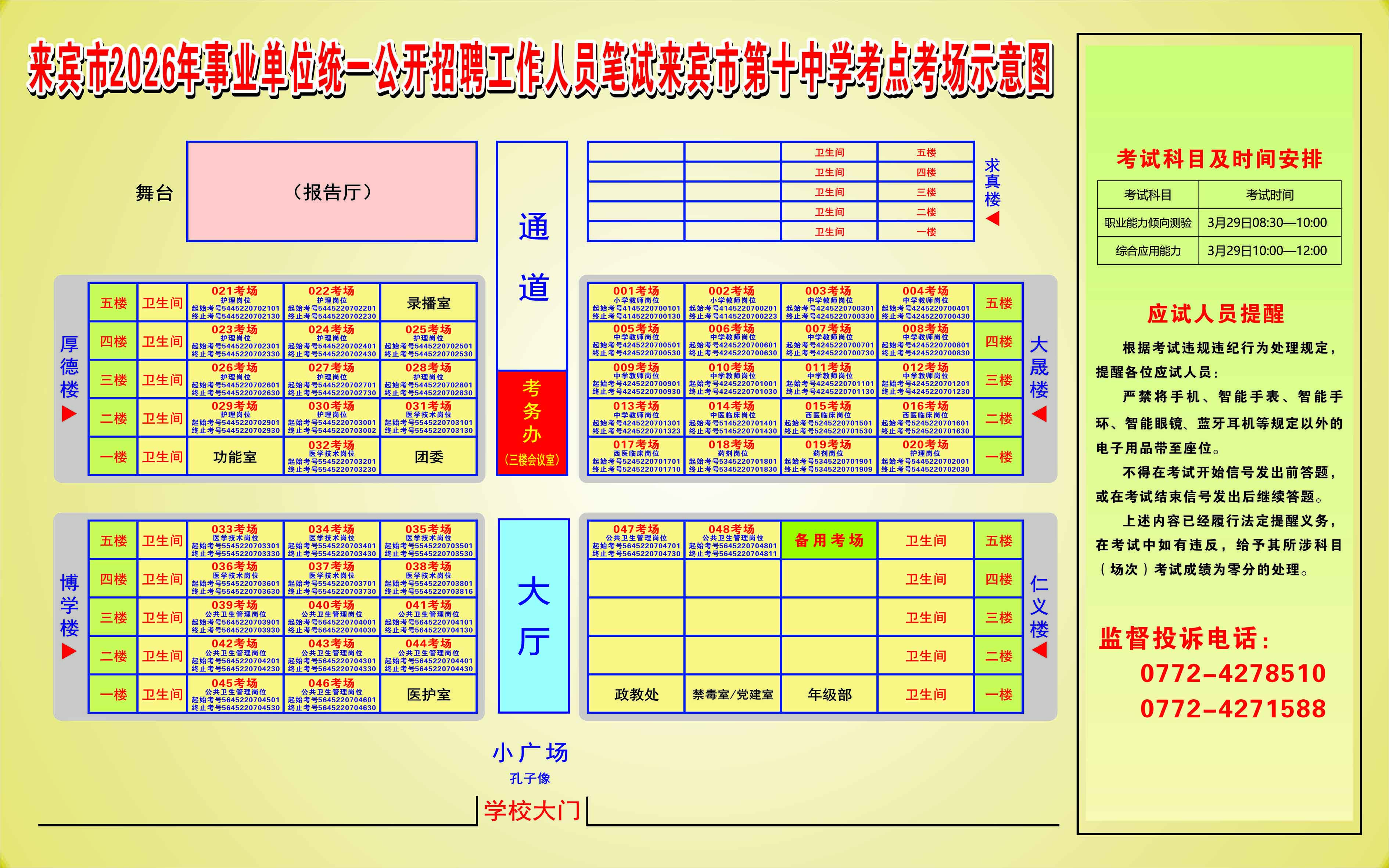 2026年來賓市事業(yè)單位統(tǒng)一公開招聘工作人員筆試考生須知及考點考場示意圖