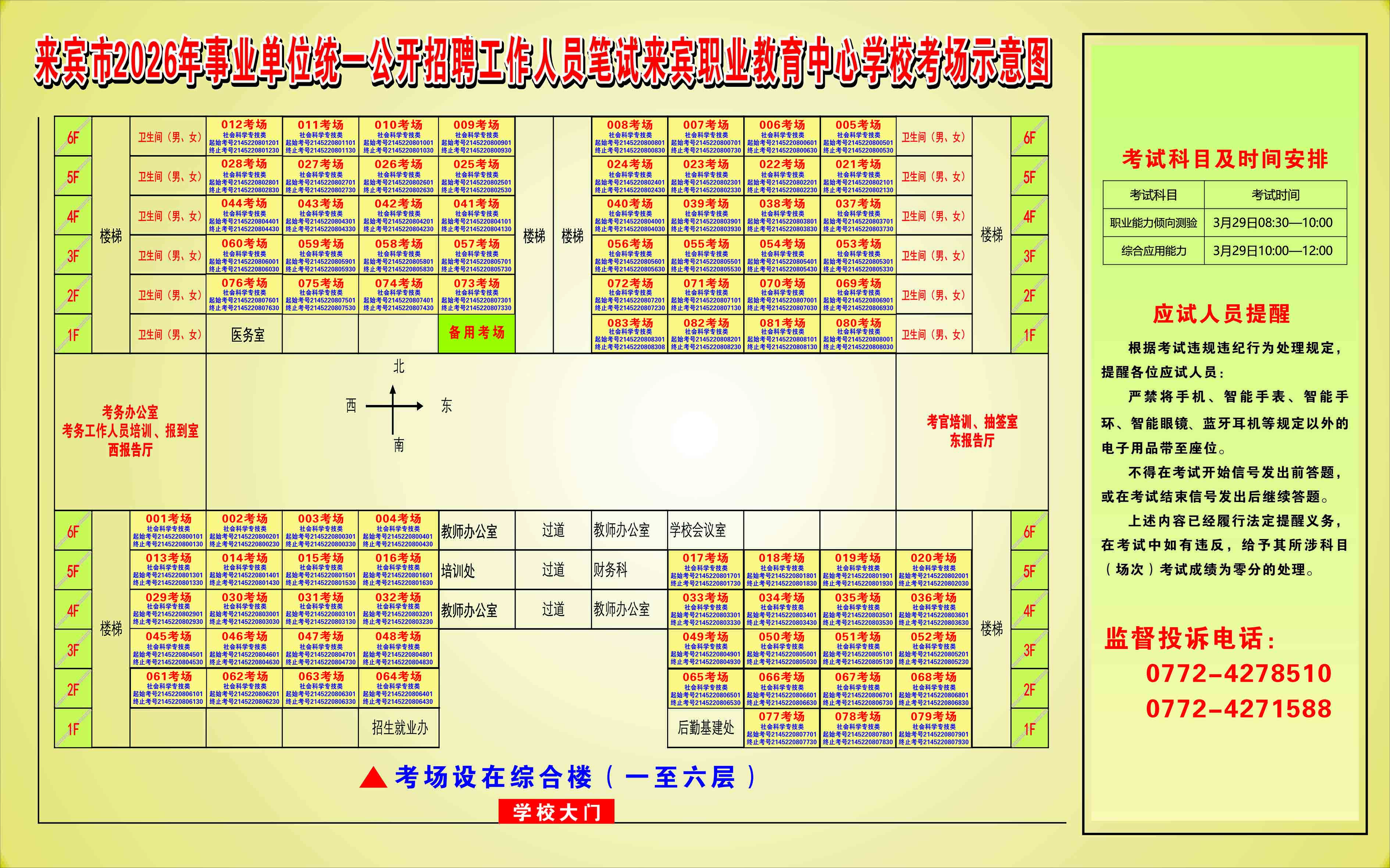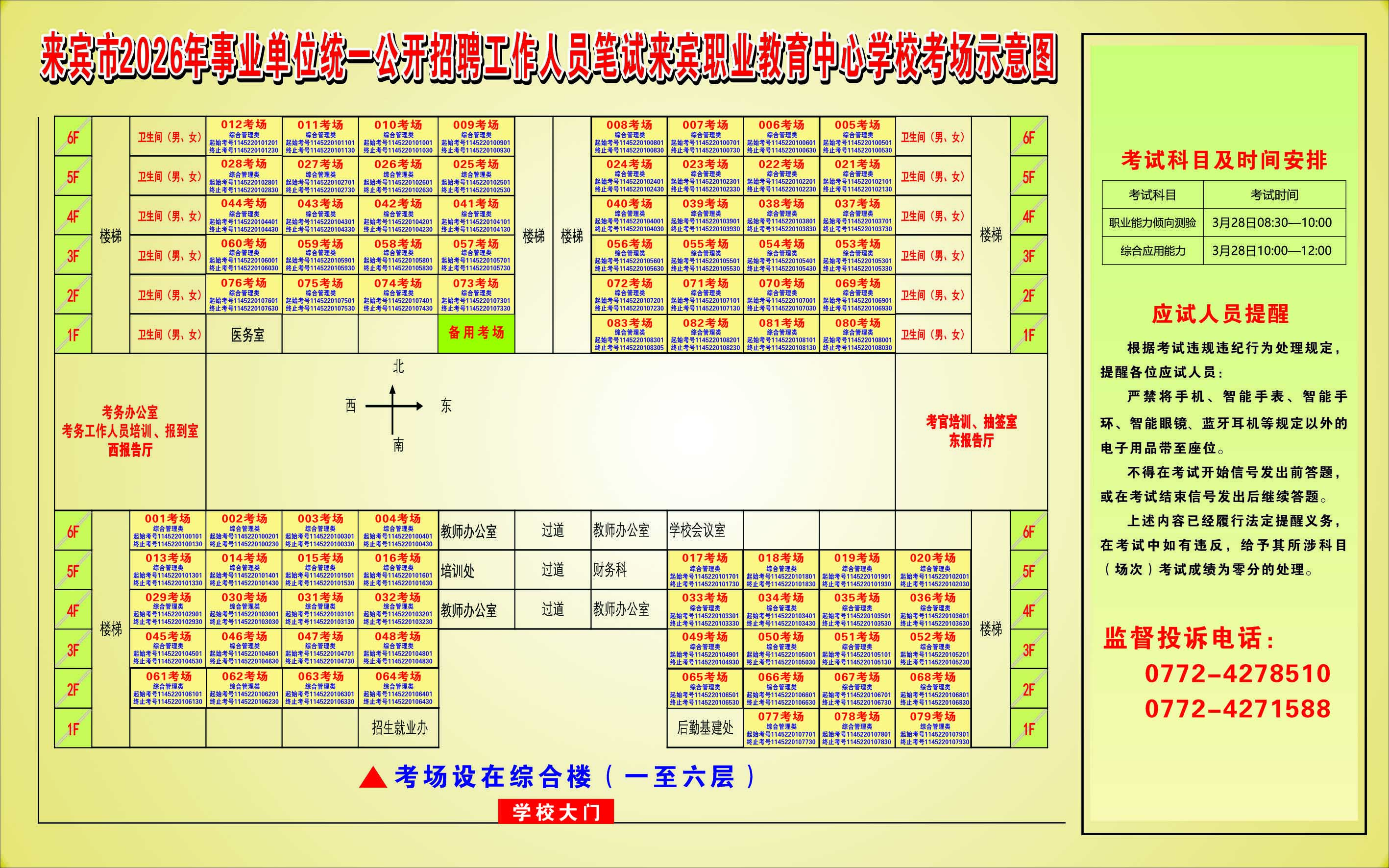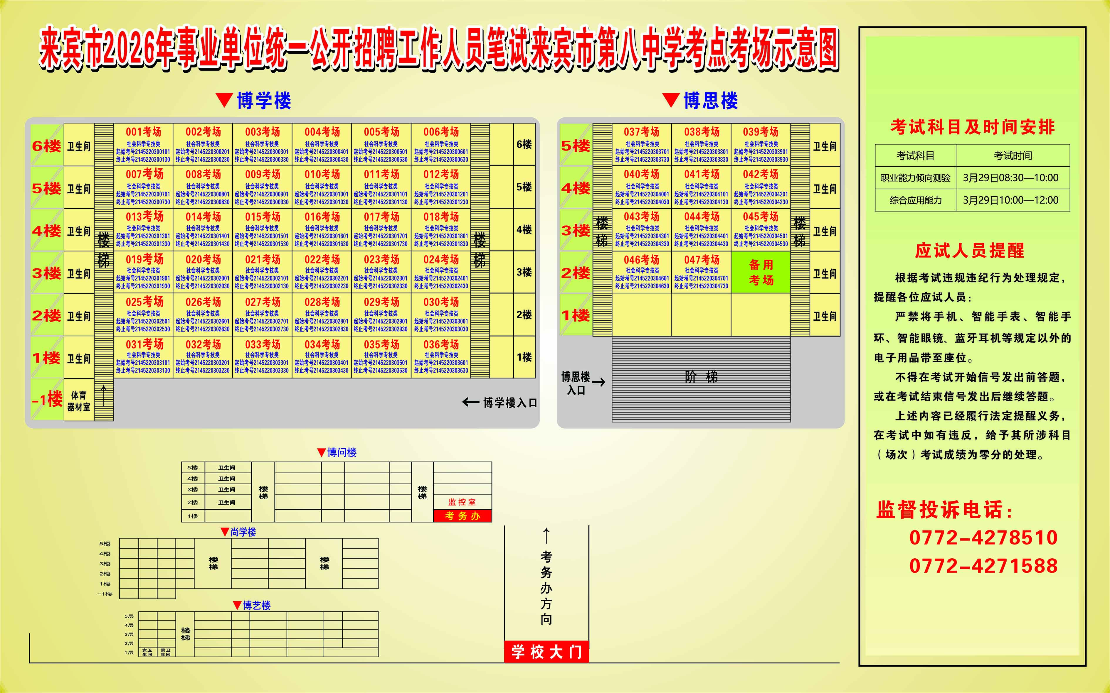 2026年來賓市事業(yè)單位統(tǒng)一公開招聘工作人員筆試考生須知及考點考場示意圖