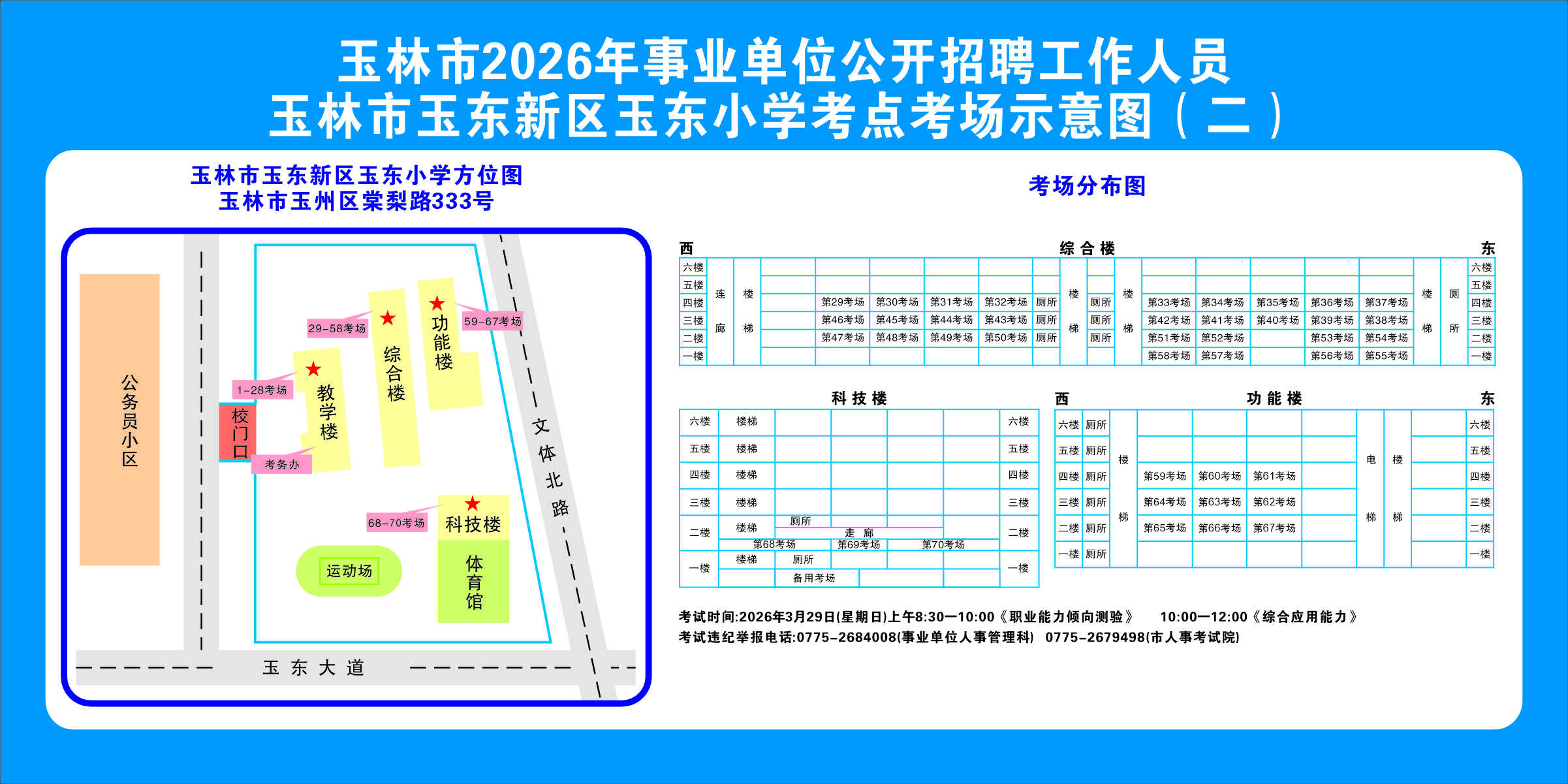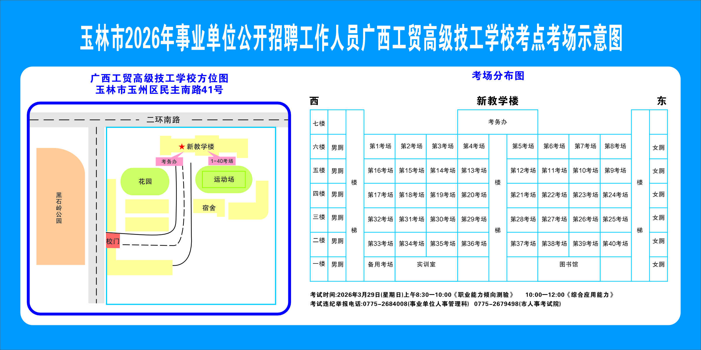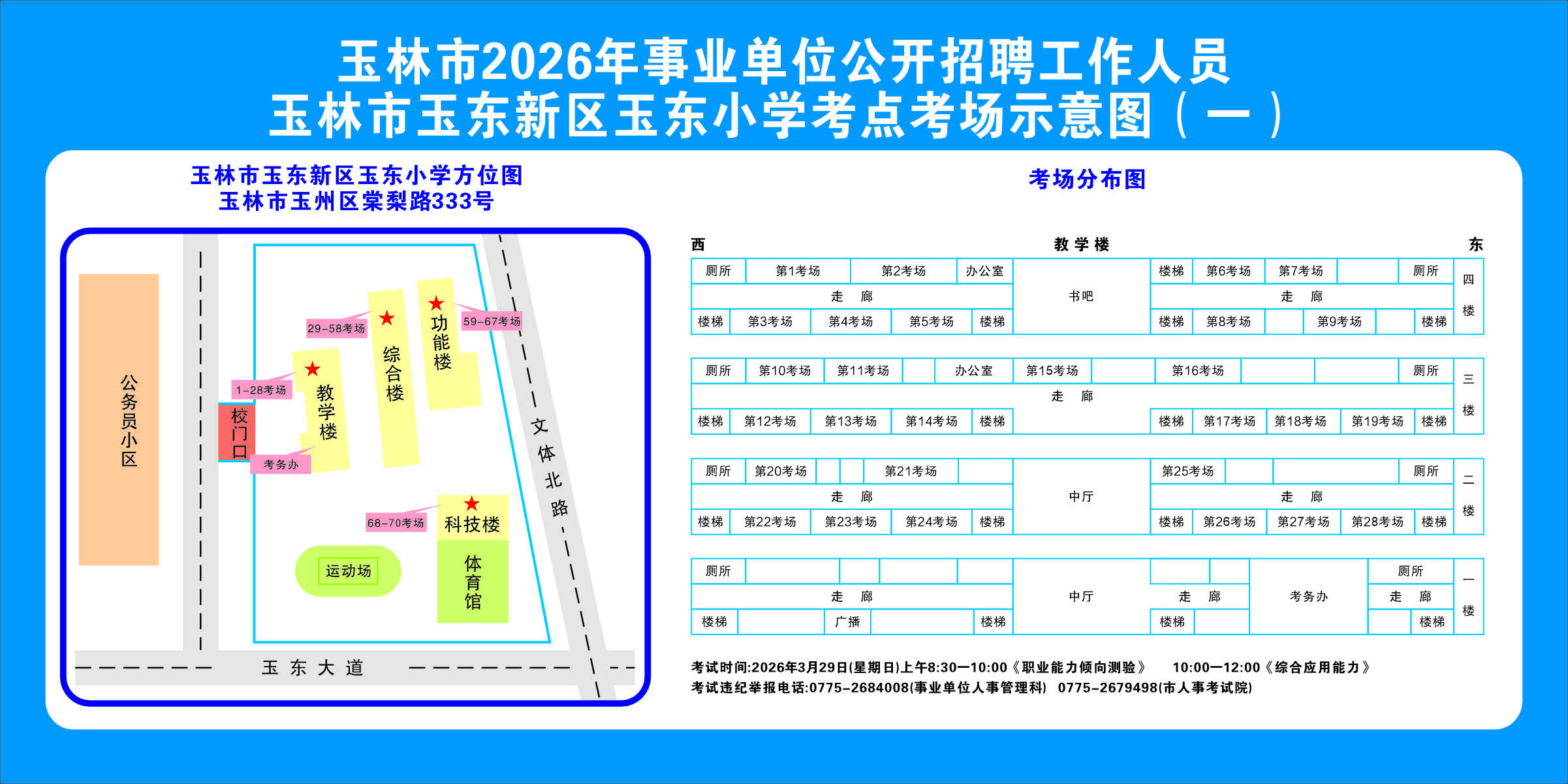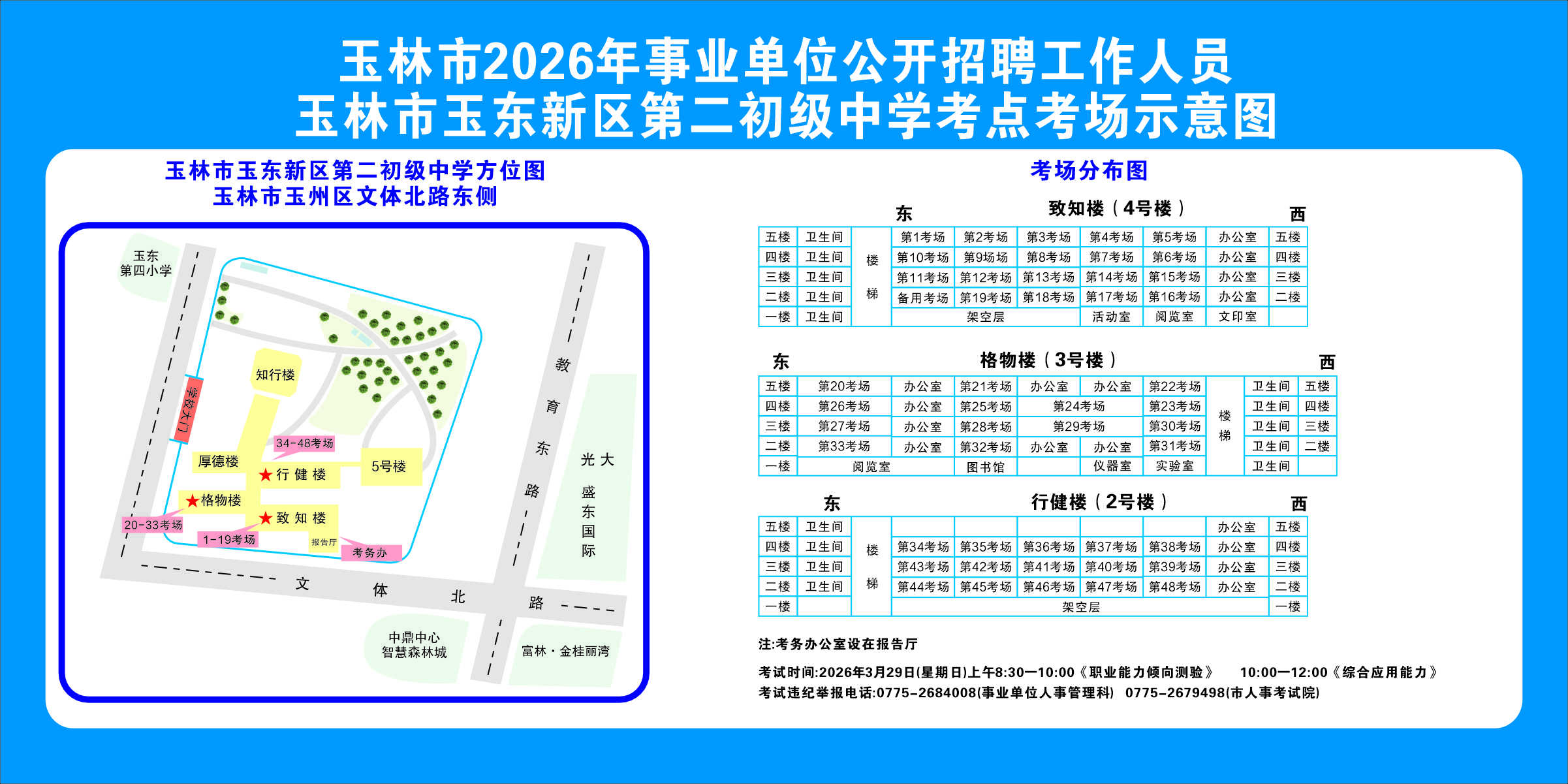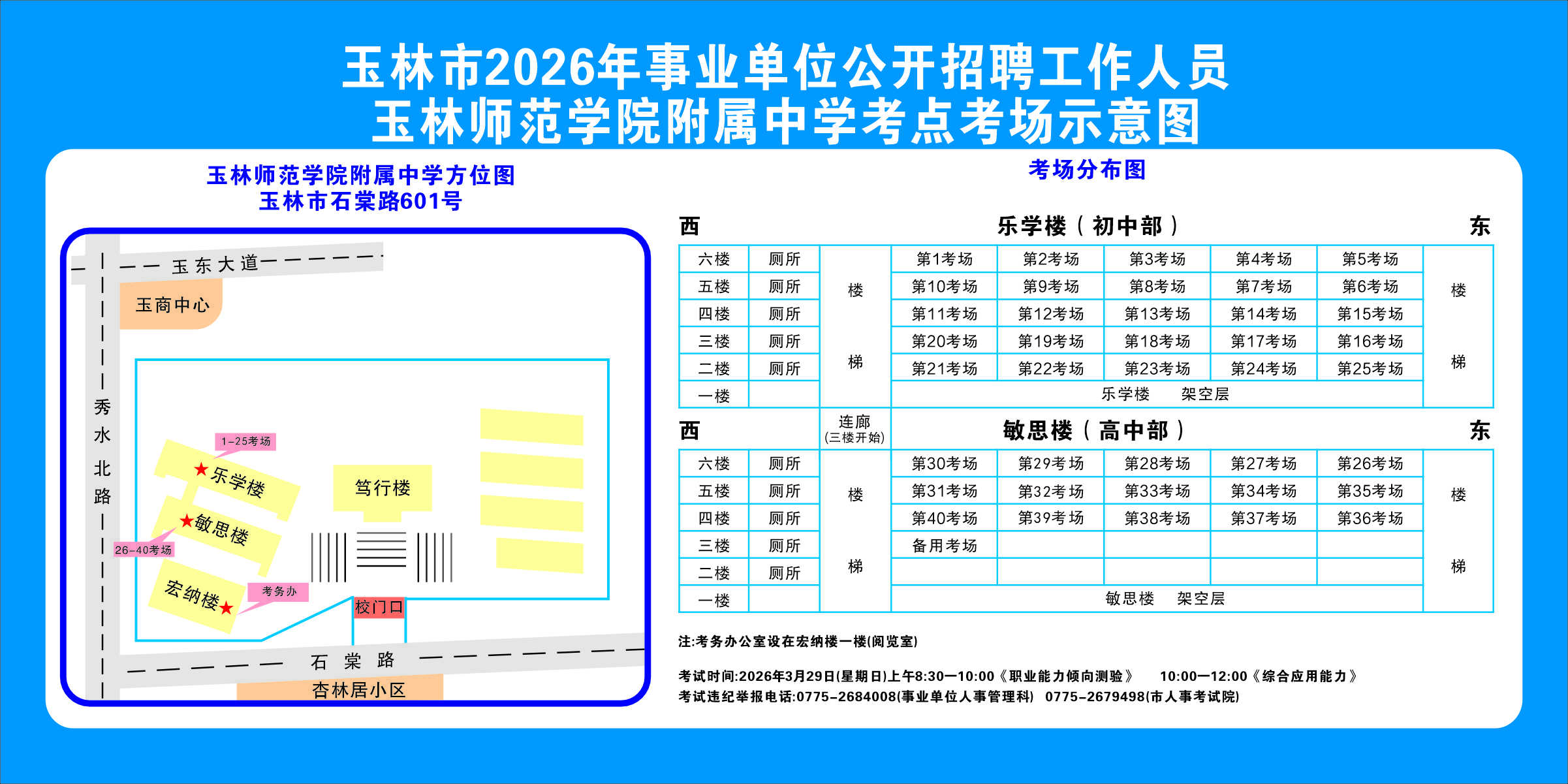 2.需要特別注意的是:玉林市第一職業(yè)中等專(zhuān)業(yè)學(xué)??键c(diǎn)是設(shè)在該校的東校區(qū)(人民東路東235號(hào));玉林市第一中學(xué)考點(diǎn)分為運(yùn)嶺路校區(qū)(二環(huán)北路1228號(hào))、大北路校區(qū)(大北路453號(hào))。