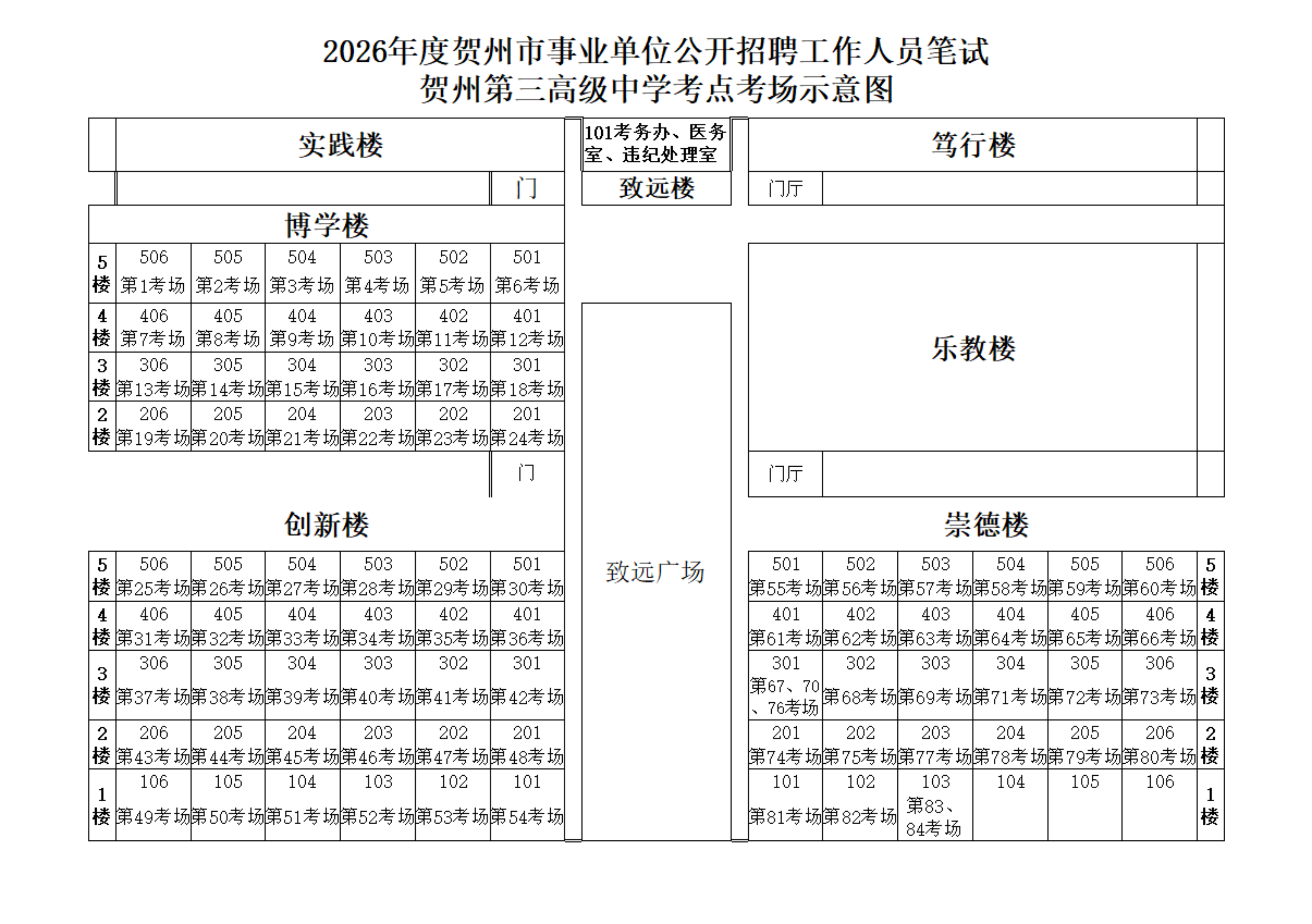 考生提前了解準考證上指定的考試地點,熟悉考點學校地址、交通路線,考試當天預留足夠時間,避免因堵車、走錯考點或遲到等原因影響參加考試。請關注考試當天天氣,注意做好防雨防寒防滑等個人防護準備。本次考試賀州市考區(qū)共設3個考點,分別為: