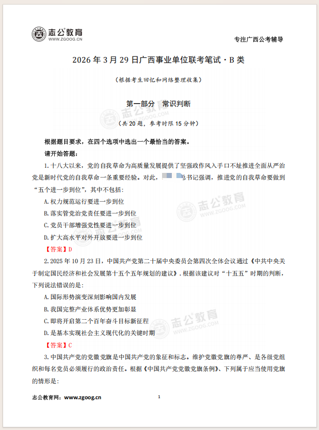 志公教育第一時間整理了考題及解析