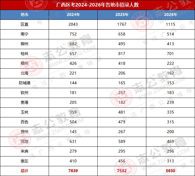 2026廣西區(qū)考招錄人數(shù)較去年大幅度減少,2026年招錄公告,本次區(qū)考計劃招錄總?cè)藬?shù)為5630人,較2025年的7532人減少1902人,同比降幅達(dá)25.25%,是近年招錄規(guī)模收縮幅度較大的一年。