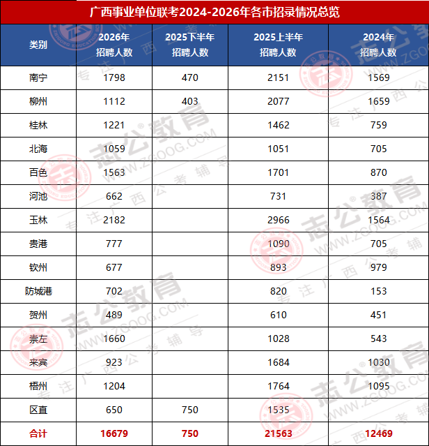 2026廣西事考招錄16679人,較2025上半年廣西事業(yè)單位招錄縮招了4884人;招錄波動大、但是機(jī)會集中,醫(yī)療E類、綜合A 類為招錄主力;廣西區(qū)直、南寧、桂林等崗位競爭激烈,是應(yīng)屆生與社會考生圓夢重要賽道。